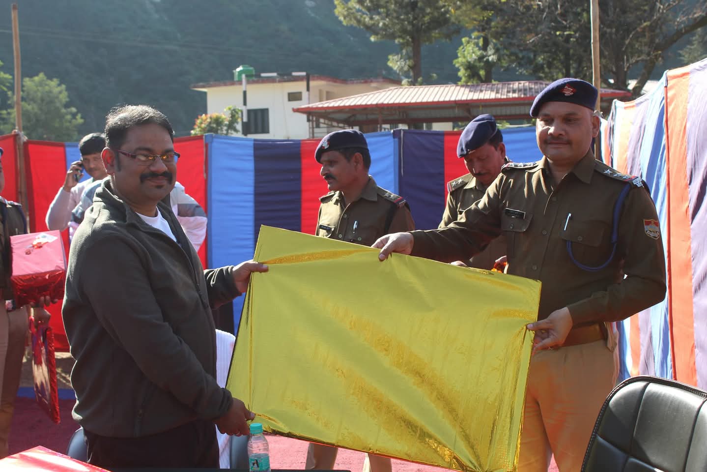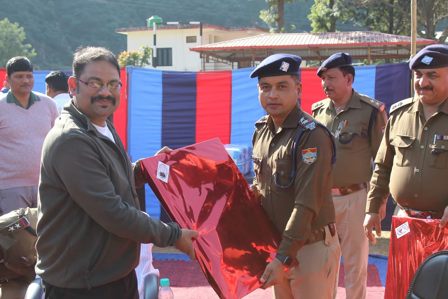 , विदाई समारोह में पुलिस उपाधीक्षक उत्तरकाशी श्री सुरेन्द्र सिंह भण्डारी द्वारा एस0पी0 सर् को नवनियुक्ति की शुभकामनाएं देते हुये जनपद उत्तरकाशी में उनके मार्ग दर्शन में उत्तरकाशी पुलिस द्वारा किये गये कार्यों के अनुभव साझा किये गये। इस दौरान उत्तरकाशी पुलिस के अधिकारी व कर्मचारियों द्वारा एस0पी0 सर् को पुष्पमाला पहनाते हुये उपहार भेंट कर नवनियुक्ति हेतु शुभकामनाएं दी गयी।
