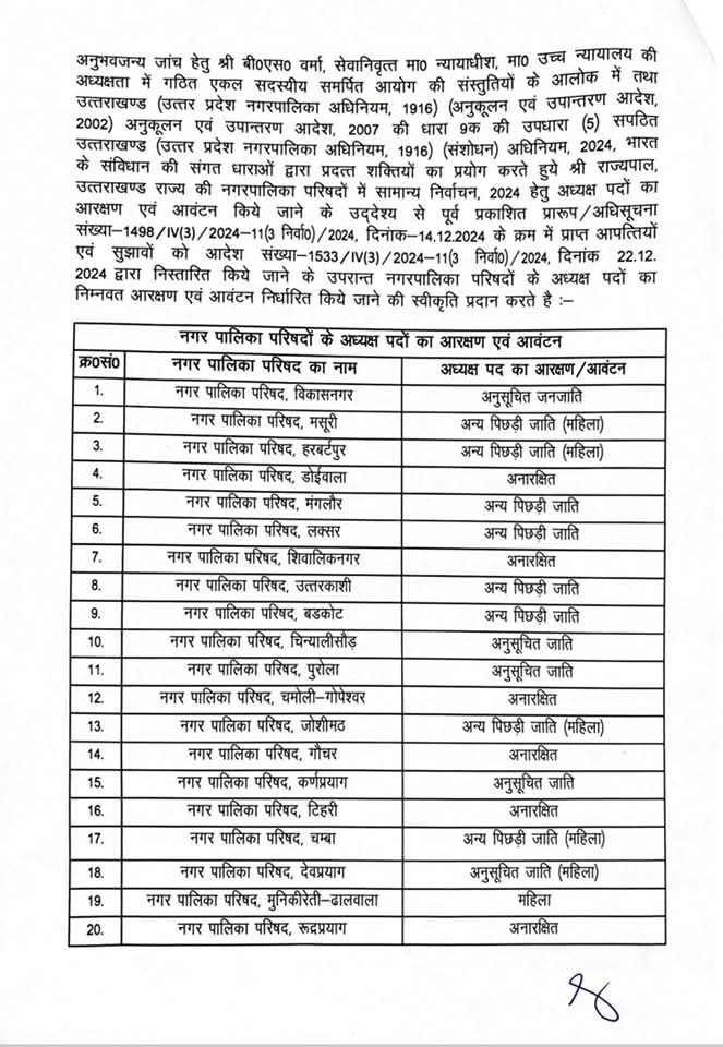 Home » नगर पालिका परिषदों के अध्यक्ष पदों की आरक्षण एवं आवंटन सूची।
